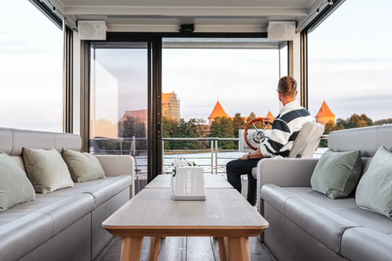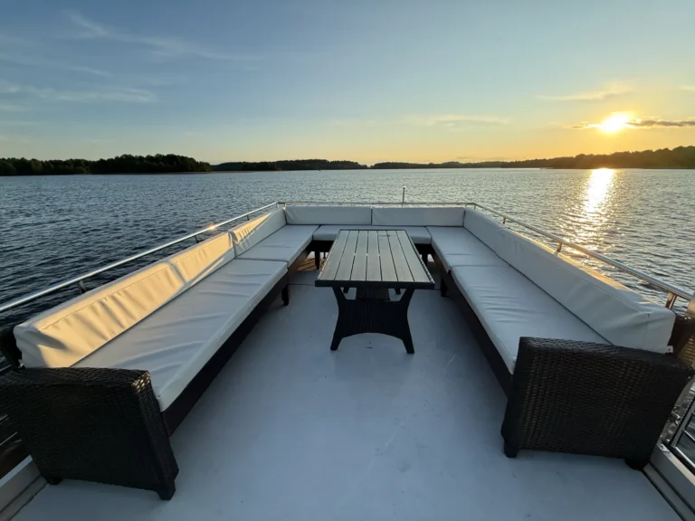 Įspūdžių kupinas pasiplaukiojimas kerinčios gamtos ir artimųjų apsuptyje. Jaukaus ir prašmatnaus laivo nuoma jūsų šventei.